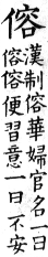 | 釋 義 | ㈠ 不安穩之貌。《說文解字.人部》:「傛,不安也。」清.段玉裁.注:「與水波溶溶意義略同,皆動盪貌。」 ㈡ 1.「傛華」:漢代宮中女官名。《玉篇.人部》:「傛,《漢書》:傛華,婦官名。」 2.「傛傛」: ⑴便習意。《集韻.平聲.鍾韻》:「傛,傛傛,便習意。」 ⑵生病不安貌。《正字通.人部》:「傛,疾病不安曰傛傛。」 |